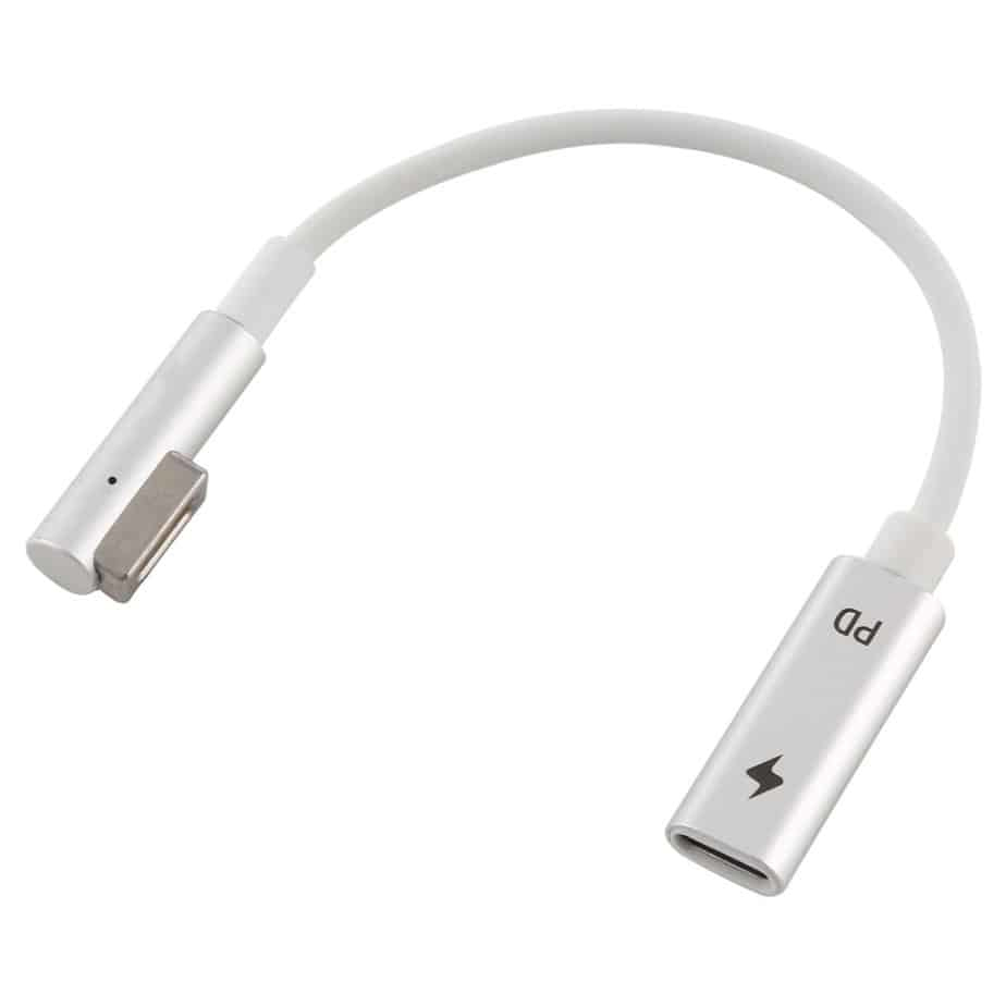 (uorginal)Smart adaptor så du kan bruge en USB-C oplader (med de rigtige Watt) til din Mac5 Pin magnetic head (L Head the First Gen) to Type-C PD Quick Charge AdapterPlug and play, easy to operateBold wire design, durableThe transmission is stableLight weight and easy to carryTotal length: about 16cmPackage included:1 x 5 Pin magnetic head (L Head the First Gen) to Type-C PD Quick Charge Adapter